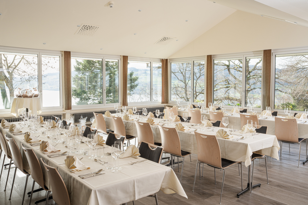 Der Seminarraum Brestenberg befindet sich im Erdgeschoss. In diesem Raum ist die Aussicht einzigartig. Er bietet Platz für Veranstaltungen jeglicher Art. Konzertbestuhlung für bis zu 50 Gäste auf über 80m².